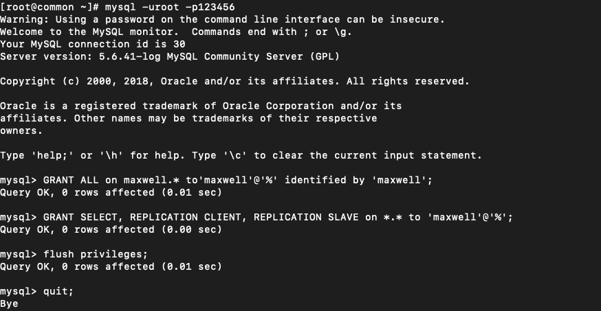 4.1、给数据库新增用户名/密码均为maxwell的权限