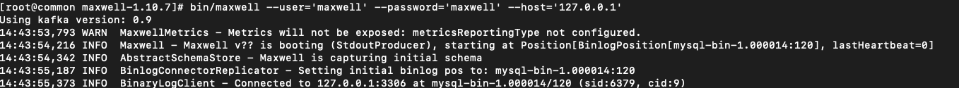 bin/maxwell --user='maxwell' --password='maxwell' --host='127.0.0.1'